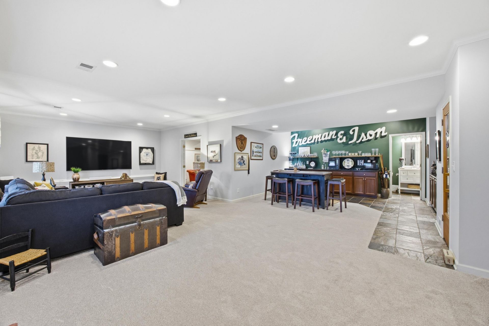 Located in Ellerslie at Delong, this beautifully maintained home privacy, functionality, and thoughtful design. Situated on a gently sloping, fully fenced and irrigated lot backing to green space, the setting provides a sense of seclusion. The main level is both elegant and practical, featuring a first floor primary suite with an ensuite bath and walk in closet. The kitchen is well appointed with granite countertops and stainless steel appliances and flows seamlessly into the main living areas. A two story family room with gas fireplace serves as a striking focal point, complemented by a formal dining room, powder room, and a main floor laundry room with custom built in cabinetry. Hardwood flooring predominates throughout the main level, with tile in the utility room and primary bath. Upstairs, three generously sized bedrooms offer excellent closet space and share a full bath, providing flexibility for family, guests, or additional workspace. The finished lower level creates additional opportunities for expanded living area or multi-generational accommodation. The open family room with bar area is ideal for hosting gatherings, while a separate office or flex space could easily accommodate overnight guests. An additional private room lends itself well to a home gym or quiet retreat, and the full bath and private sauna elevate the space into a true extension of the home's offerings. Two unfinished storage rooms provide easily accessible storage space. Outdoor living is equally inviting with a covered back deck and a lower level patio, both great choices for an end of the day retreat. Ellerslie at Delong stands apart in Lexington, offering approximately 70 acres of dedicated green space, a beautifully landscaped entrance and central boulevard, and the benefit of minimal through traffic.