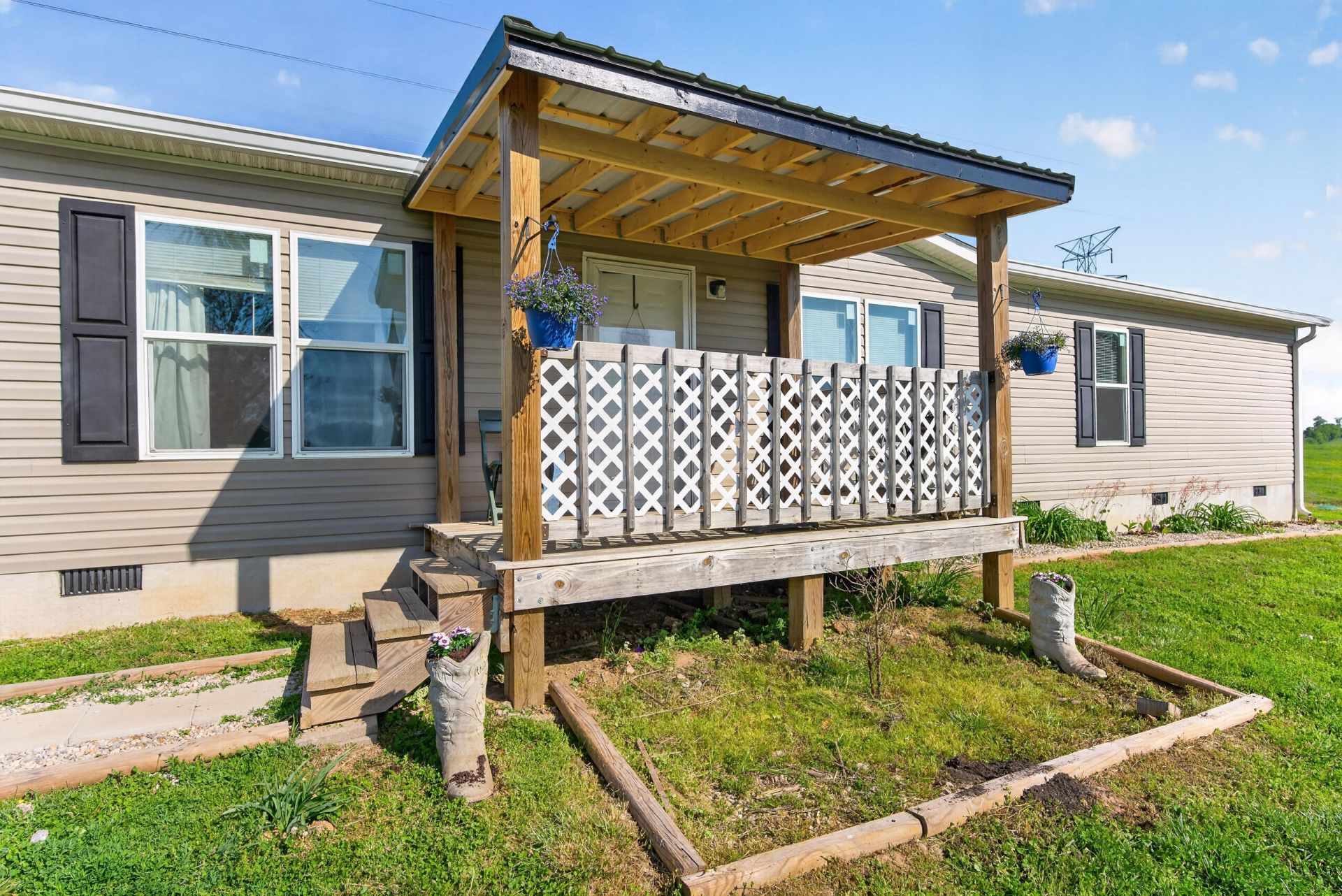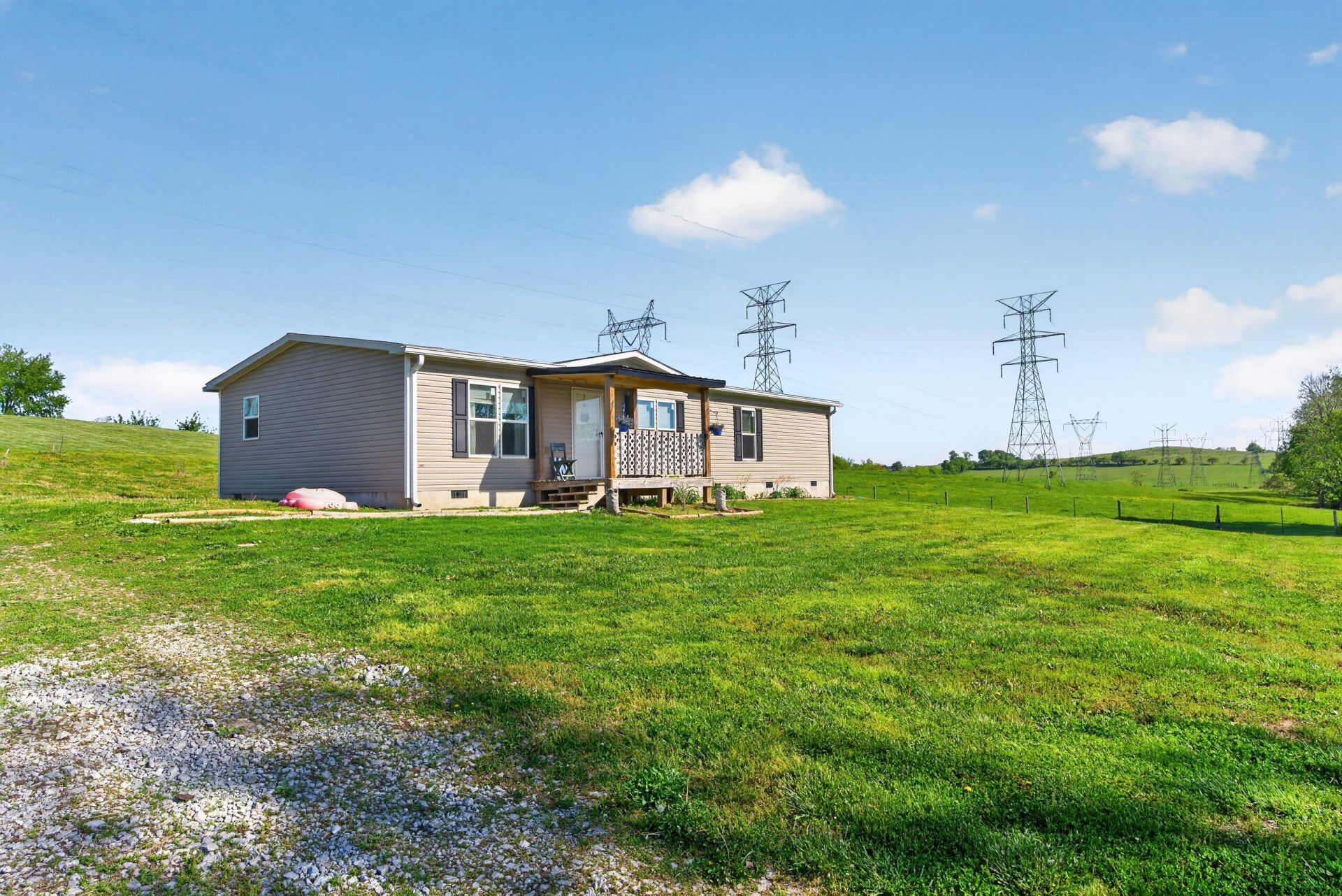 Enjoy the perfect blend of peaceful country living and everyday convenience in this charming 3-bedroom, 2-bath manufactured home situated on a full acre halfway between Wilmore and Harrodsburg. Relax on the covered front porch and take in the scenic surroundings. Inside, you'll love the luxury vinyl flooring throughout and the spacious, open layout. The large kitchen is the heart of the home, featuring a generous island, solid surface countertops, and plenty of room for cooking and gathering. The oversized primary suite offers a private retreat with a full en suite bath, while two additional bedrooms share a second full bathroom. Outside, the backyard provides plenty of space for play, gardening, or entertaining, plus a storage shed for all your tools and toys. If you've been looking for just the right amount of country living without sacrificing convenience, this one is a must-see!