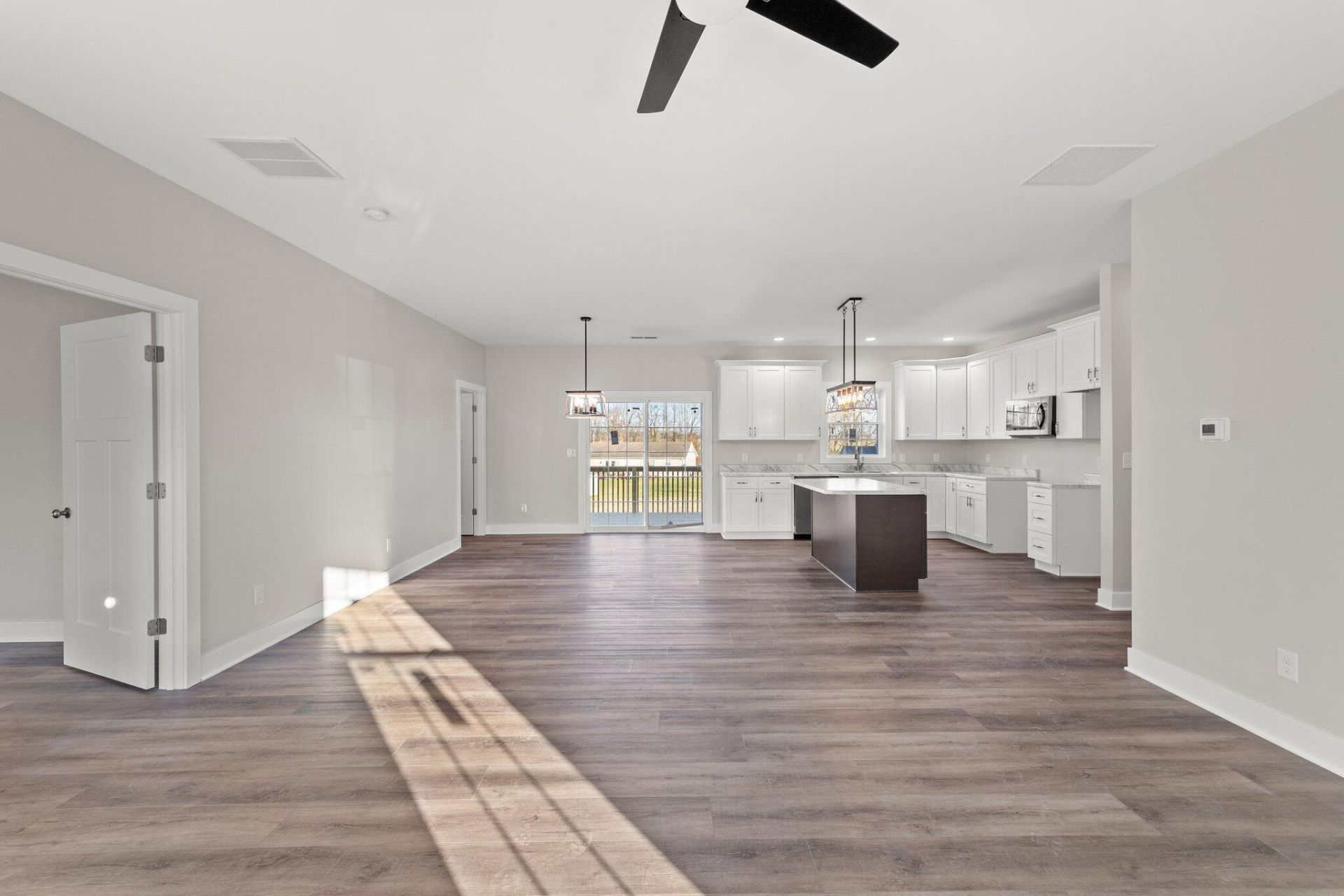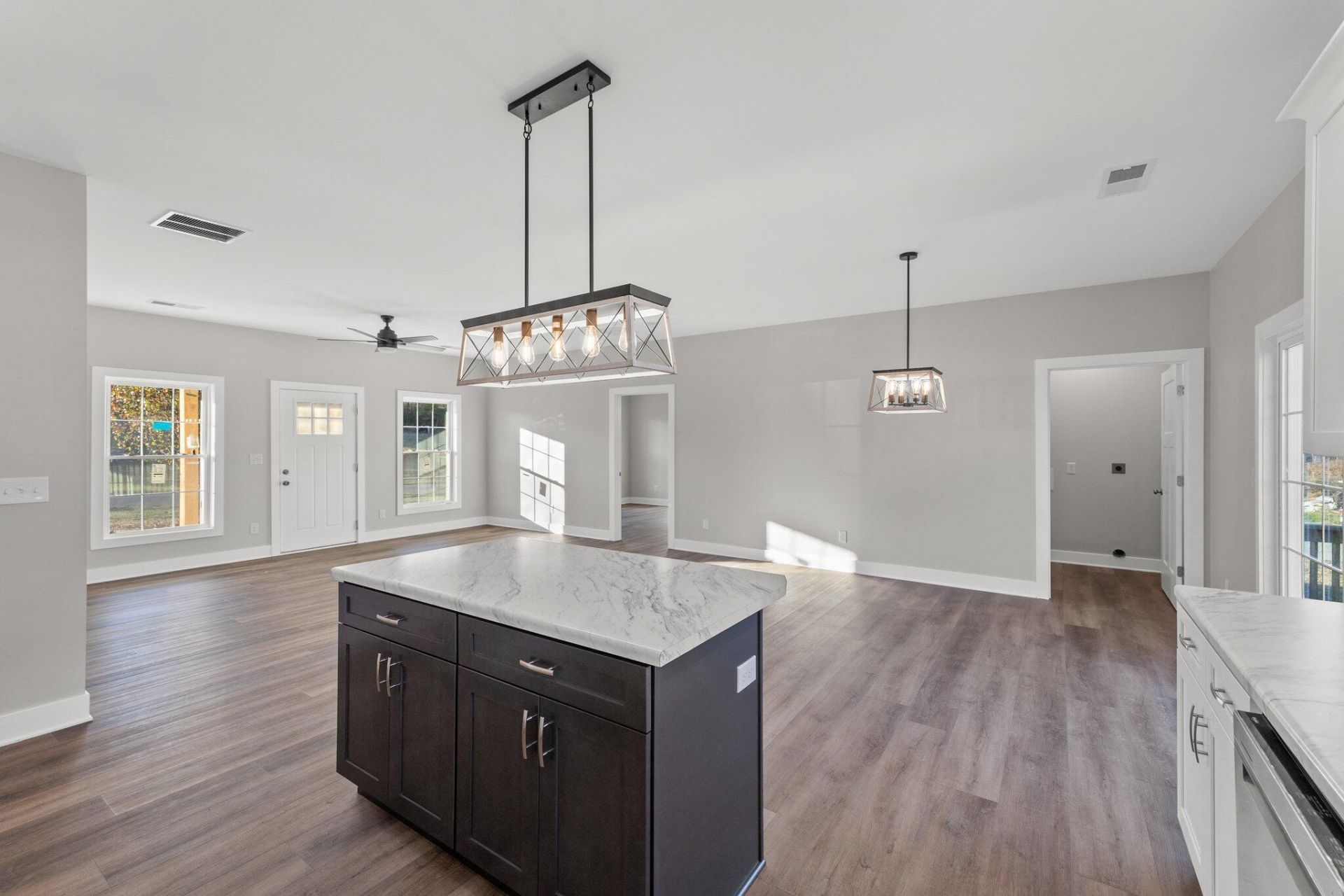 Love the idea of a newer home but don't want the wait or hassle of building? This 2023-built home is the perfect solution. Designed with comfort and functionality in mind, this home features a spacious open-concept layout, with the great room and kitchen serving as the heart of the home. The primary suite is privately located on one side, while two additional bedrooms sit on the opposite side, creating a desirable split-bedroom floor plan. Each bedroom offers generous closet space, and the 23' x 24' garage provides excellent additional storage. The bright and inviting kitchen is ideal for everyday living and entertaining, featuring upgraded cabinetry with crown molding, under-cabinet lighting, stainless steel appliances, and a center island perfect for gathering with family and friends. Relax on the covered front porch and enjoy the peaceful country setting with scenic farm views, giving you the quiet charm of rural living while still being conveniently located. Additional upgrades include spray foam insulated walls for energy efficiency, luxury vinyl plank flooring throughout the entire home, and other thoughtful finishes that make this home truly move-in ready. Come experience everything this beautiful, nearly new home has to offer.