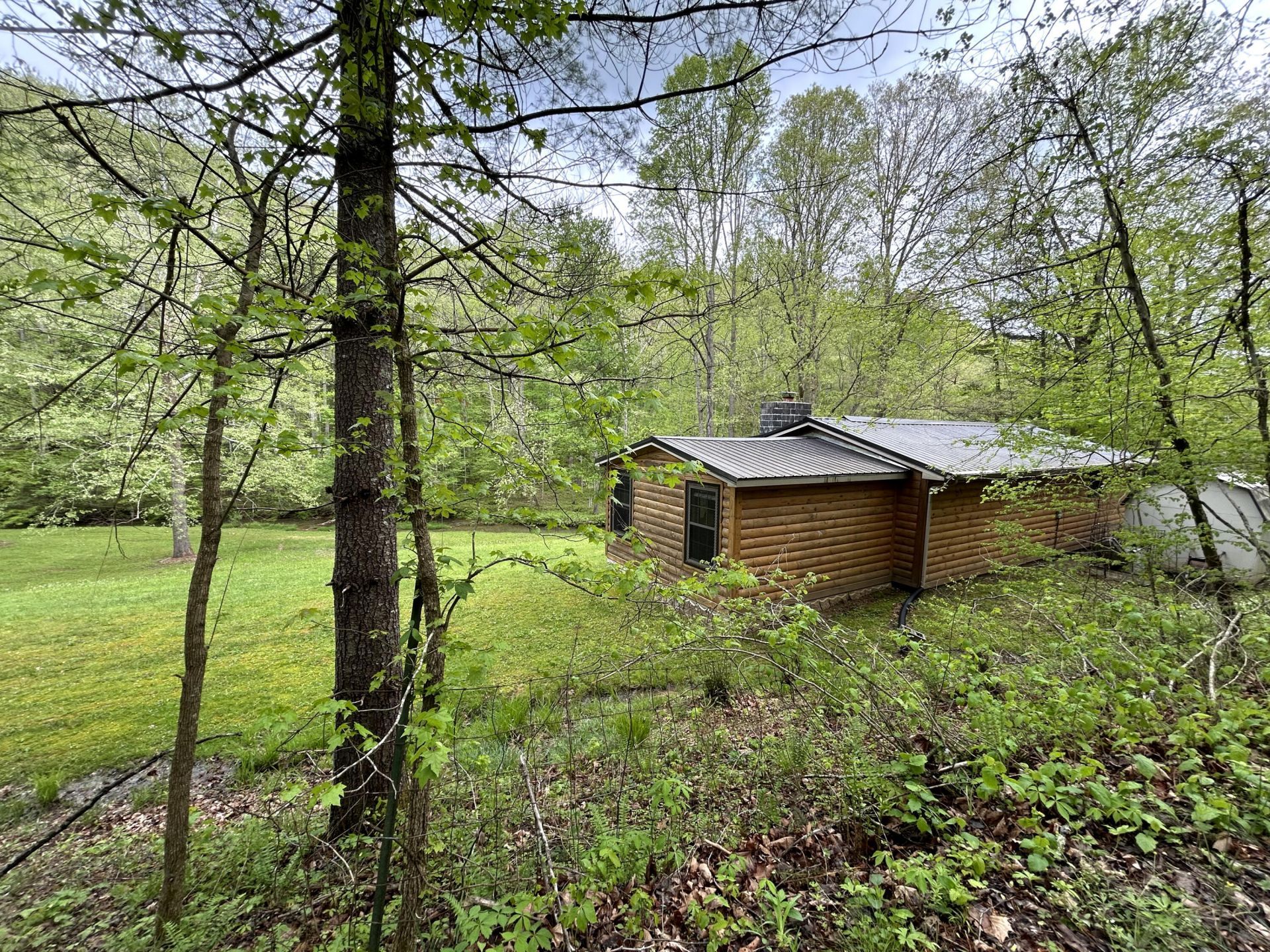 Looking for off-grid living in a park-like setting? This fully-furnished cabin offers incredible scenery along the pristine waters of Raccoon Creek, surrounded by umbrella magnolias and other historic flora and fauna. Totally off-grid with no electricity and water service available, but you can still enjoy modern conveniences with the rainwater-fed cistern, a propane-powered hot water heater, range, wall heater and refrigerator, an electric-powered water pump for the sinks and toilet, and ceiling fans and electric plugs throughout. The breaker box is powered by a gas generator kept out back in a steel cage. Rooms include a large primary bedroom and smaller bedroom, a utility/storage room, a full bath, and great room with large kitchen, dining room and living room with stone faced fireplace. Cozy but spacious, there's lots of room for family and friends. The covered porch, side deck and shed adds outdoor living space and storage.This 3.04 acre homested joins the Daniel Boone National Forest in front and borders Raccoon Creek Road in the back. Enjoy hiking, horseback riding, off road adventures and endless outdoor activities right outside your door on the 4-mile Renfro Loop multi-use trail. S-Tree Campground and the Sheltowee Trace trailhead, the ultimate 343-mile National Recreation, is just a mile away. This property comes move-in ready and is completely furnished! Please note: cell service is spotty in this area. Raccoon Creek Road is off to the right, about a half mile before you head into the S-Tree Campground. Please allow extra time to schedule a viewing of this property. Manual start-up of electricity and water service is required, so listing agent's assistance is required for set-up before showing.